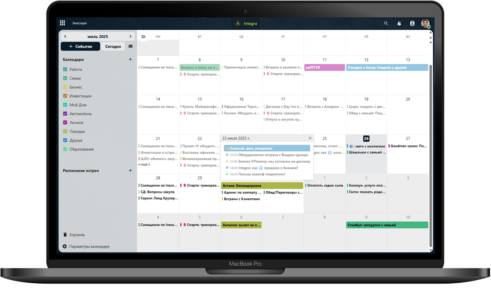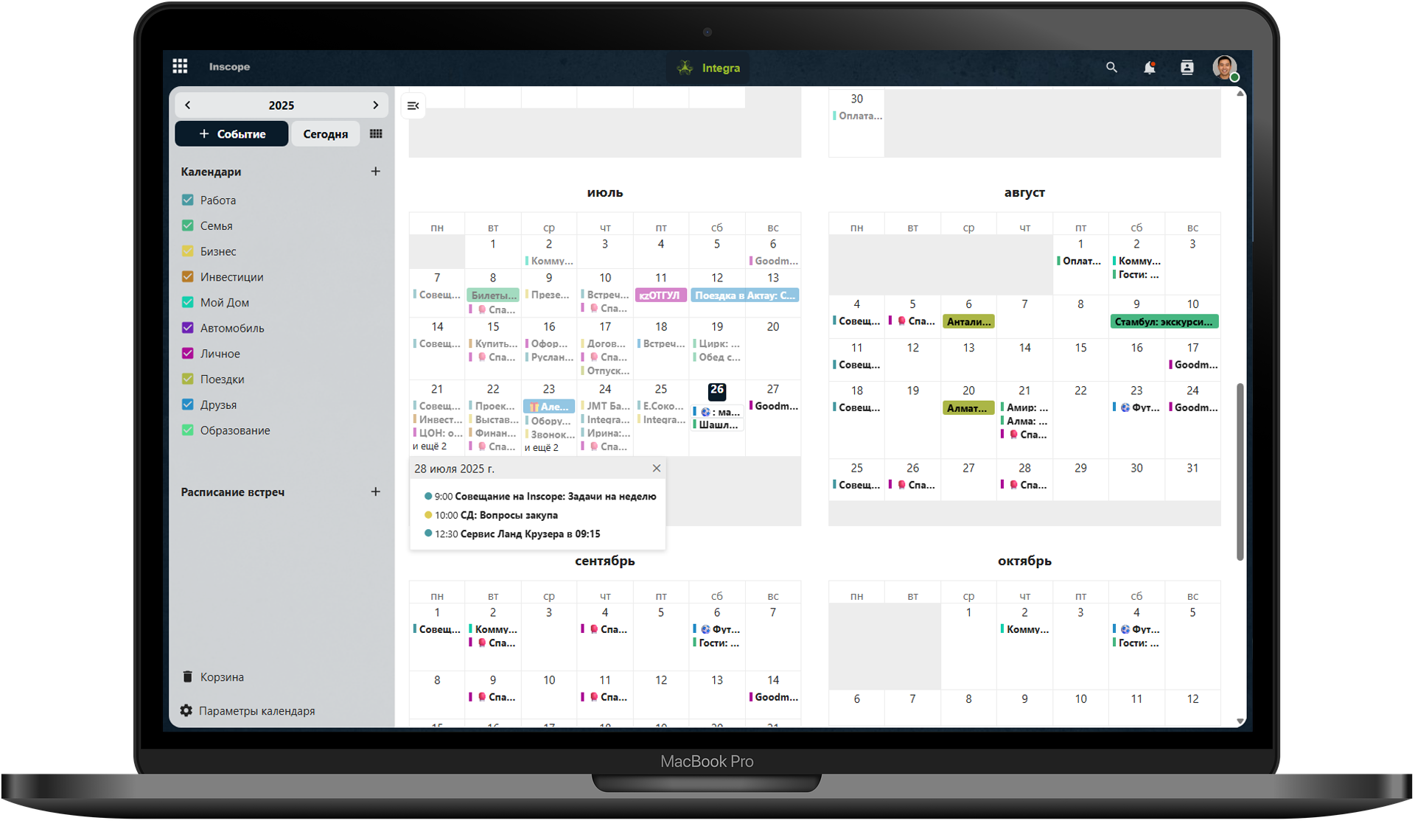 Инструменты планирования встреч, задач и событий с удобной интеграцией с почтой, напоминаниями и общими календарями обеспечивают слаженную работу команды